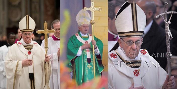 Je me suis dit aussi que, d'une certaine manière, depuis l'avènement du pape Francois, les cérémonies sont encore plus "Benoît XVIèmes" qu'avant parce que le nouveau pape semble refuser de porter certains ornements anciens dont la beauté m'échappe (pas la beauté de tous les ornements anciens mais celle de certains) ... je pense que Benoît XVI, ami de la sobriété liturgique, acceptait ces "mariniades" (*) parce que c'est sa manière de gouverner et vraisemblablement d'être: quand il confie quelque chose à quelqu'un après avoir longuement réfléchi et prié, il s'en remet à cette personne et laisse passer ce qu'il voudrait lui-même corriger (*), tant que cela constitue seulement un aspect peu important de la question à traiter, bien sûr.