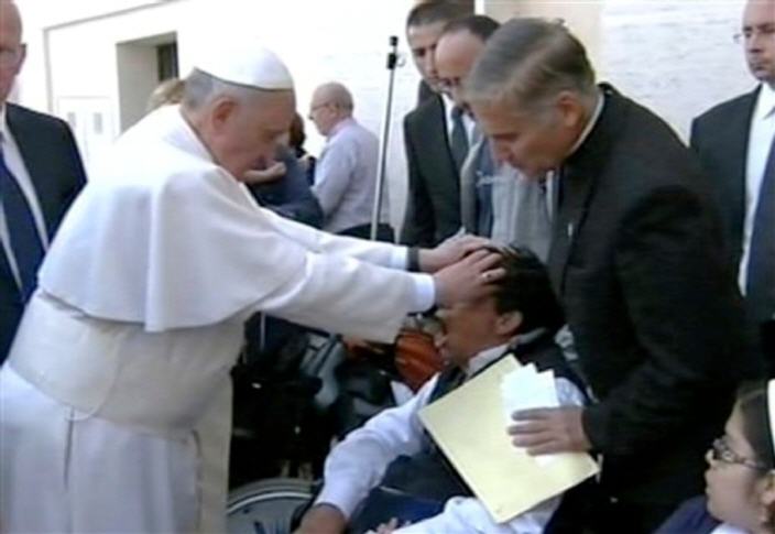« Bon, c’est déjà dans tous les journaux et quelques pages internet : Le Pape a fait un exorcisme. Mais je veux préciser que la personne n’est pas un enfant mais une personne adulte. Et deuxièmement, que ce qu’il a fait c’est une prière sur une personne possédée » écrit le Père Juan Rivas, prêtre mexicain de la Légion du Christ, qui a présenté au Pape, Àngel, l’homme en fauteuil roulant pour qui le Souverain Pontife a prié après la Messe de Pentecôte dimanche sur la Place Saint Pierre, retenant l’attention de la presse.