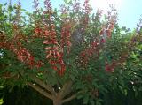Le monastère Mater Ecclesiae est ici, moderne et lisse, presque au centre du minuscule territoire du Vatican. Devant, un exemple rare d'Erythrina crista-galli (ndt "crête de coq", voir ici), dit l'arbre au corail, originaire d'Argentine, Uruguay, Brésil et Paraguay, avec ses inflorescences rouge vif caractéristiques.