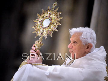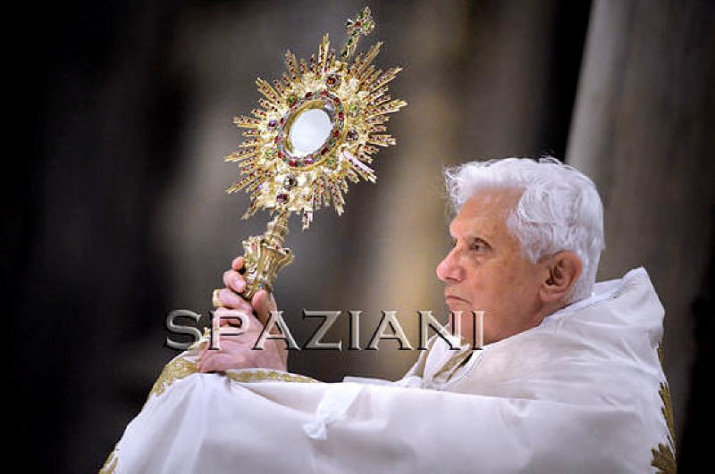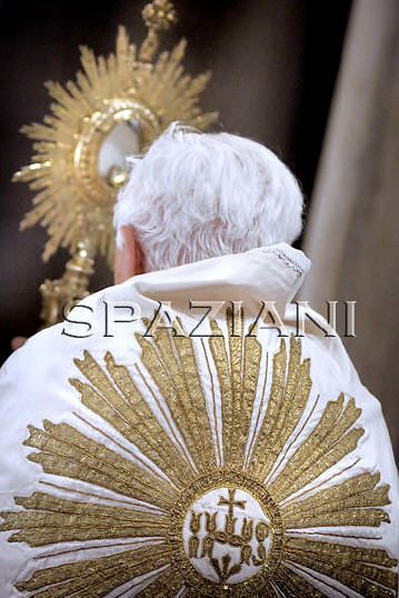Toutefois, de cette intimité, qui est un don très personnel du Seigneur, la force du sacrement de l'Eucharistie va au-delà des murs de notre Eglise. Dans ce Sacrement, le Seigneur est toujours en marche vers le monde. Cet aspect universel de la présence eucharistique apparaît dans la procession de notre fête. Nous portons le Christ, présent dans la figure du pain, dans les rues de notre ville. Nous confions ces rues, ces maisons - notre vie quotidienne - à sa bonté. Que nos rues soient les routes de Jésus! Que nos maisons soient des maisons pour lui et avec lui! Que notre vie de tous les jours soit empreinte de sa présence. Avec ce geste, nous plaçons sous son regard les souffrances des malades, la solitude des jeunes et des personnes âgées, les tentations, les peurs - toute notre vie. La procession souhaite être une grande bénédiction publique pour notre ville: le Christ est, en personne, la bénédiction divine pour le monde - que le rayonnement de sa bénédiction s'étende sur nous tous!