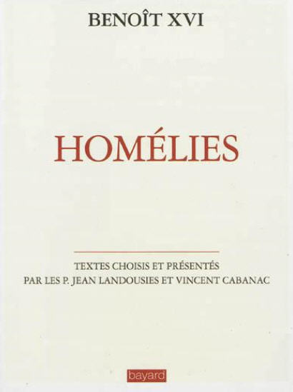 Je viens d'acheter ce recueil d'homélies de Benoît XVI, choisies et présentées par les Pères Jean Landousies et Vincent Cabanac. La belle préface. (19/8/2013)