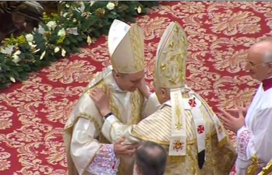 Et je ne peux m'empêcher de revoir avec un oeil différent, et un petit pincement au coeur, cette video du 6 janvier dernier, lorsque Benoît XVI confére à son secrétaire (qui était dans la confidence de la renonciation toute proche) l'ordination épiscopale.