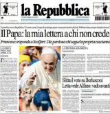 La lettre fait la une du journal (qui trouve là un excellent moyen de gonfler ses ventes: espérons qu'ils auront la délicatesse de verser leur obole à "La Charité du Pape") sous le titre accrocheur "Ma lettre à ceux qui ne croient pas".