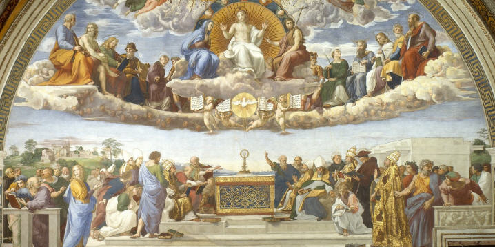 De même, il y a cinq siècles, lorsque Raphaël a peint cette sublime fresque des Chambres du Vatican qu’est la "Dispute du Saint-Sacrement", il a placé l'hostie consacrée au centre de tout, sur l’autel d’une grandiose liturgie cosmique qui voit l’interaction du Père, du Fils, du Saint-Esprit, de l’Église terrestre et céleste, du temps et de l’éternité.