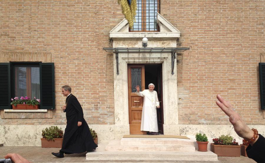 Sur la vie quotidienne du pape émérite, l'archevêque a expliqué: «Nous sommes six, le pape et les quatre memore qui étaient dans l'Appartement. L'endroit est peut-être le plus beau, géographiquement, de tout le Vatican, dans les jardins; c'est un bâtiment des années 30, qui a été construit pour Radio Vatican, il y avait un édifice pour la direction et une maison pour le directeur technique, puis dans les années 80, Jean-Paul II a demandé qu'il y ait au Vatican des religieuses cloîtrées, alors la maison a été agrandie et on a fait une chapelle. Et quand le pape a pris sa décision, il a dit: "Je voudrais aller là". Bien sûr, il fallait faire des aménagements (ndt: cela permettrait de dater sa décision, sans doute bien antérieure à ce qui est généralement admis: il faudrait que je retrouve quand les travaux ont commencé à mater Ecclesiae). Maintenant, il vit là, il va bien, il est clair que c'est un homme âgé, un peu frêle et fragile physiquement, mais il n'a jamais été un grand sportif. Mais la tête fonctionne très bien. Et comme il l'a dit quand il a quitté le pontificat, il veut se retirer sur la montagne, et là, d'une autre manière, il continue à faire sa mission. Il prie, il lit, il reçoit des visites, il se promène et il a une ample correspondance privée; et il y a un excellent contact avec son successeur».