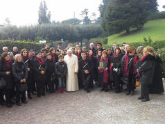 Avec beaucoup d'émotion, le choeur de la Basilique de Collemaggio a rencontré Sa Sainteté Benoît XVI, Pape Emérite.