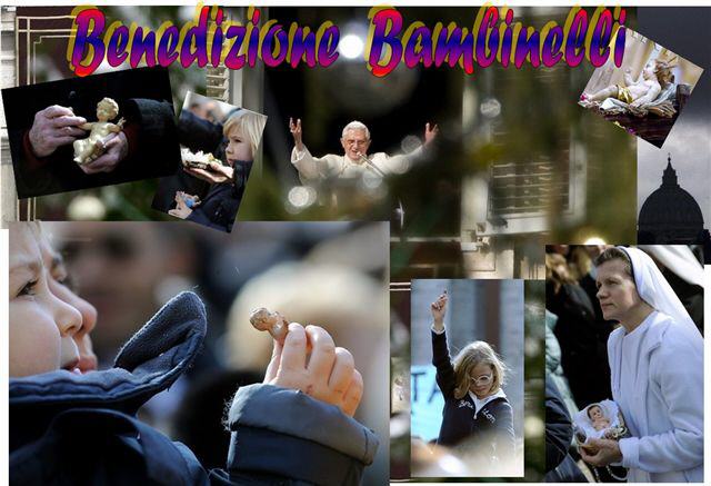 Dans cette lumière, c'est pour moi un réel plaisir de renouveler la tradition de la bénédiction des "enfants Jésus", les petites statues de l'enfant Jésus qui seront déposées dans la crèche. Je m'adresse spécialement à vous, chers garçons et filles de Rome venus ce matin avec vos "enfants Jésus", que je bénis maintenant. Je vous invite à vous unir à moi en suivant attentivement cette prière:
