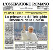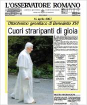 Et pourtant, la maquette soi-disant "kitsch" de l'ancienne version de l'OR avait proposé quelques "unes" consacrées à Benoît XVI, peut-être "glamour" selon le qualificatif ironique de John Allen, mais belles et souvent poétiques, et j'en avais en leur temps archivées quelques-unes.