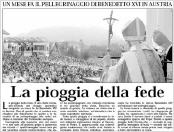 Sous cette pluie, la foi tenace et courageuse de tout un peuple, pressé autour du Successeur de Pierre, s'est manifestée. Elle a fait apparaître dans son exubérance entraînante "la réalité vivante, fidèle et 'plurielle' de l'Eglise Catholique" autrichienne, comme l'a rappelé Benoît XVI, au lendemain du pélerinage.