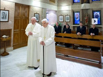 Aujourd'hui, en fin d'après-midi, François s'est rendu au couvent Mater Ecclesiae, pour présenter au Pape émérite ses voeux de Noël.