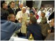 Après l'Angelus, le Pape se rendait en toute discrétion dans la Salle Paul VI, pour partager le repas de 350 personnes (SDF, malades du sida, immigrés...) qui bénéficient, à Rome, de l'assistance des soeurs de Mère Teresa de Calcutta.
