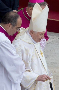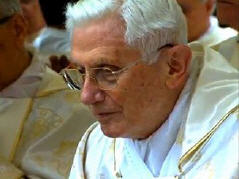 Et Marie-Christine, qui m'a envoyé la photo en bas à droite, avec ces mots: Ce portrait de Benoît XVI de ce matin est un cadeau du Ciel. Oui, il est là, bien là, le "pilier" de l'Eglise .
