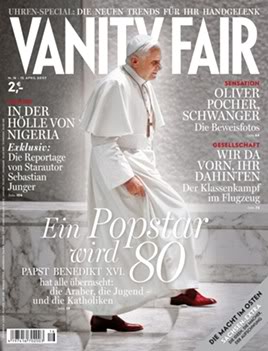 La couverture de Vanity Fair est si belle qu'elle ne me choque pas : on y retrouve Benoît XVI avec son élégance innée.