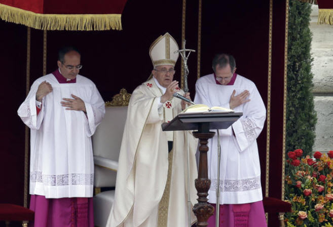De François, que dire? Il m'a semblé que parfois cette messe devait lui paraître un peu longue. Fidèle à lui-même: un fossé entre le pape des célébrations et le curé du monde des audiences et rencontres sans protocole. Toujours le même vocabulaire incisif et une courte homélie politique selon J-M Guénois. La famille est revenue comme thème essentiel, Saint Jean-Paul II était un maître en la matière.