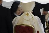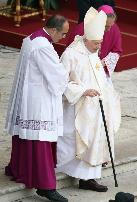 Benoît XVI certes est fragile, les années passent : il a 87 ans et non pas 86 comme je l'ai vu écrit. Il a une vie calme, entourée de soins, d'affection mais on ne peut pas arrêter la fuite inexorable du temps. Sa présence pendant un aussi long temps de célébration me rassure car je suis aisément inquiète à son sujet.