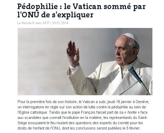 Information médiatisée (une nouvelle preuve des turpitudes du clergé) mais pas trop (on peut y voir la main de Benoît XVI, et son courage héroïque dans la lutte contre le fléau des prêtres pédophiles).