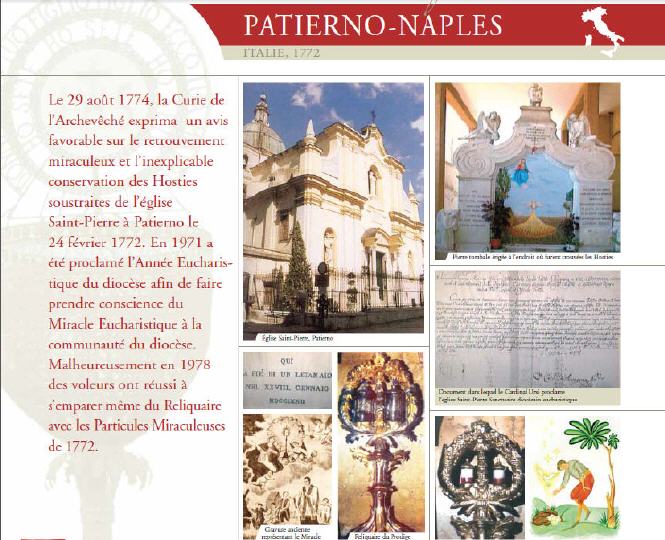 C'était en 1772 et dans l'église de Saint Pierre Apôtre à Patierno, un village dans la province de Naples, il y avait eu un vol. Les voleurs avaient emporté, entre autres ornements de l'église, également un ciboire contenant des hosties consacrées. Les recherches effectuées par le curé et les paroissiens n'avaient rien donné.