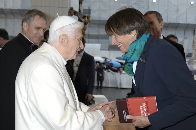 C’était le 31 septembre 2012, rappelle Gabriele Kuby, quand j’ai eu le privilège de remettre personnellement une copie du livre à Benoît XVI, et pour moi ce fut un grand encouragement de l’entendre dire : « Nous rendons grâce à Dieu pour ce que vous dites et écrivez ».