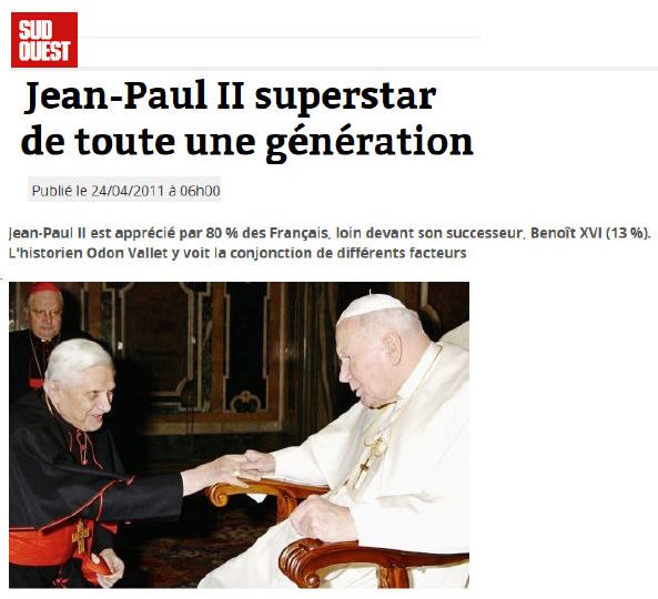 Curiosité: ce n'est pas vraiment de l'actualité, cela date du 24 avril 2011, une semaine avant la béatification de JP II (19/3/2014).