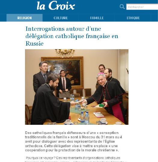 Pourquoi ce voyage? Des représentants d'organisations catholiques françaises présentés comme "défenseurs de la famille traditionnelle" sont à Moscou jusqu'au 4 avril pour représenter des représentants de l'Eglise orthodoxe et des responsables politiques russes"....