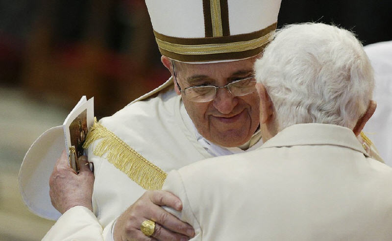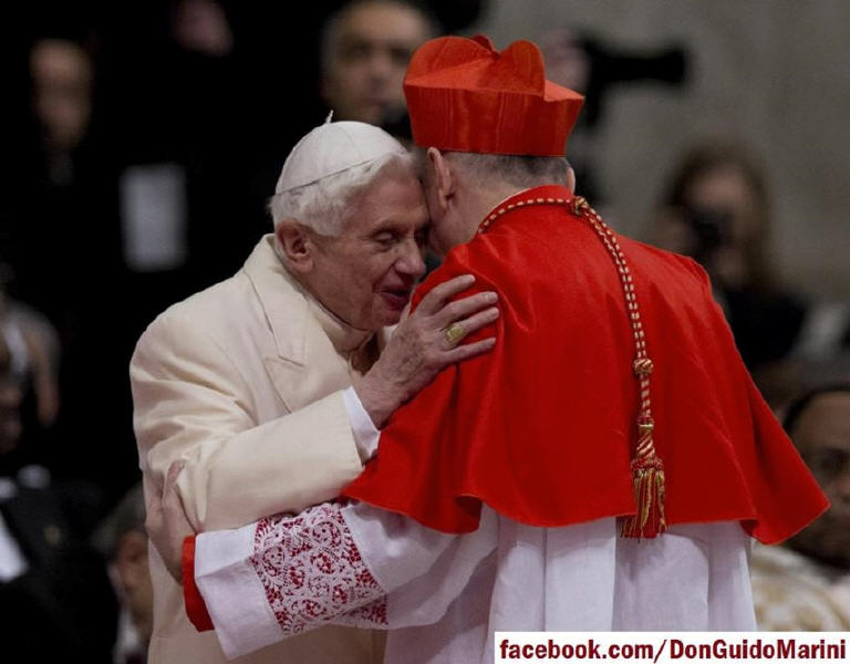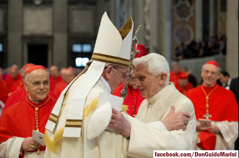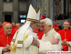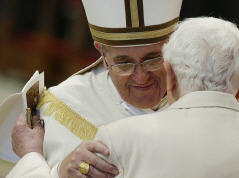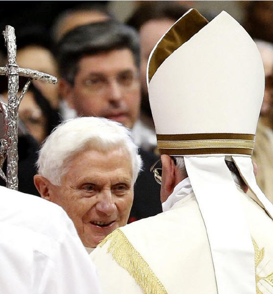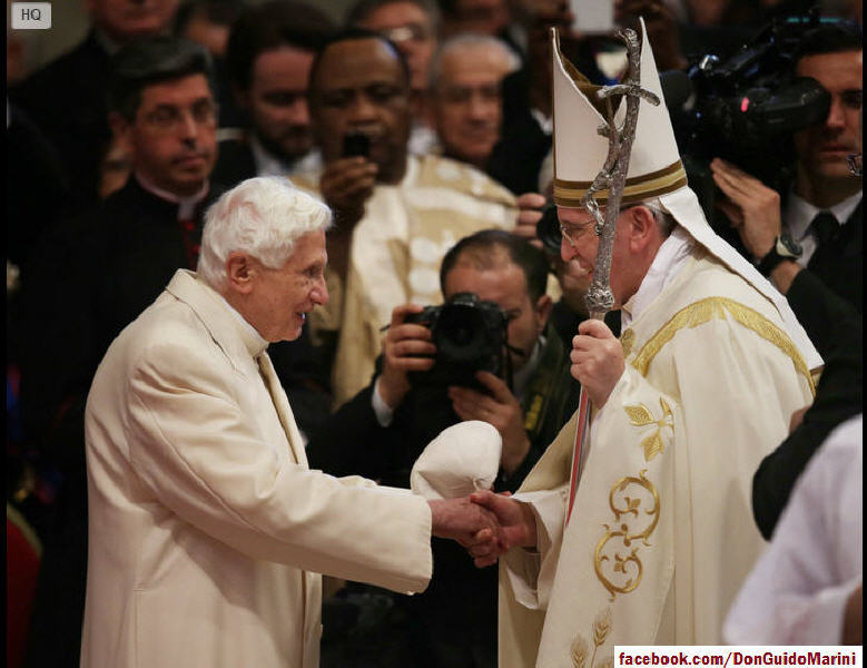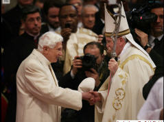 On remarquera que François portait la férule de Scorzelli. Que Benoît a ôté sa calotte, pour le saluer. Et surtout qu'il est beau (comment dire autrement?) et semble en bonne santé.