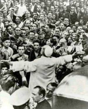 Une photographie mémorable représente Pie XII pressé par une foule de visages apeurés, tandis qu'il écarte les bras dans le geste caractéristique de bénédiction.