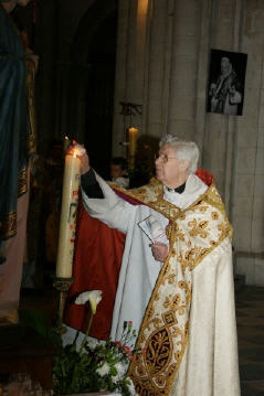 Elle rappelle le discours prononcé par le cardinal Ratzinger dans l'abbatiale Saint-Etienne de Caen, le 5 juin 2004. Des photos personnelles transmises par Anne (12/6/2014)