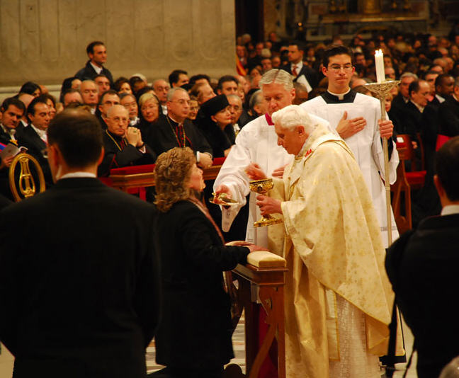 La communion des mains de Benoît XVI