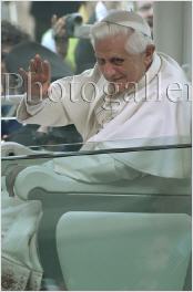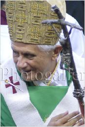 En ce qui concerne son attitude envers les fidèles qui l'acclament, nous n'avons pas dû voir la même chose: lorsque le Saint-Père retourne à la sacristie, après la messe, des grappes de fidèles s'agrippent littéralement à lui, simplement pour le toucher, et il se montre d'une douceur et d'une disponibilité totale, abandonnant sa main (et même presque son anneau!!) à leurs effusions. Il est difficile d'imaginer qu'il pourrait faire plus. N'en déplaise à l'auteur de l'article, Benoît XVI se conduit comme un vrai pasteur, et nul, sinon lui, ne peut savoir si cela lui coûte, ou s'il y trouve de la joie(il a laissé entendre aux journalistes de la télévision bavaroise qu'il y trouvait de la joie)