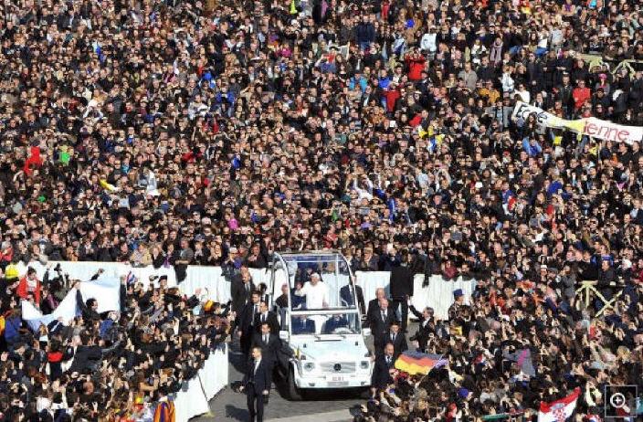 Ce mercredi, tôt le matin, la foule commençait à affluer pour participer à la 348e et dernière audience. Plus de cinq millions de personnes ont rencontré le pape durant les huit années écoulées, soit place St Pierre, soit à l’aula Paul VI.