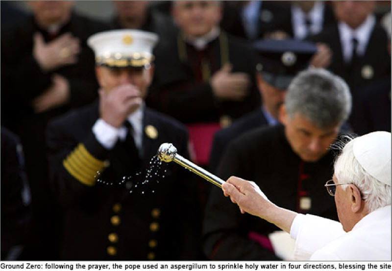 Je veux seulement rappeler ici la visite (elle aussi à l'époque entourée de polémiques stériles, dont plus personne ne se souvient) faite par Benoît XVI le 20 avril 2008, lors de son voyage aux Etats-Unis, sur le site des Tours Jumelles.