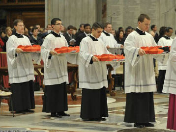 Vénérés frères élus à la dignité cardinalice, la mission à laquelle Dieu vous appelle aujourd'hui et qui vous habilite à un service ecclésial encore plus lourd de responsabilités, requiert une volonté toujours plus grande d'assumer le style du Fils de Dieu, qui est venu au milieu de nous comme celui qui sert (cf. Lc 22, 25-27).