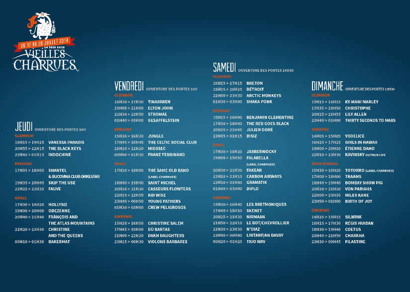 Que l'on pense, chez nous, à tous les festivals de l'été, dont les journaux locaux font la promotion, par exemple le Festival des Vielles Charrues, dont le nom fleure bon le terroir, mais dont la programmation