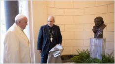 Tandis que tombait le voile du buste, que les Académiciens ont voulu au siège de l' Académie pontificale des Sciences en signe de reconnaissance et de gratitude, une émotion joyeuse s'est faite vivante dans mon âme. Ce buste de Benoît XVI évoque aux yeux de tous la personne, et le visage du cher Pape Ratzinger. Il évoque aussi son esprit: celui de ses enseignements, de ses exemples, de ses œuvres, de son dévouement à l'Eglise, de sa vie actuelle "monastique". Cet esprit, loin de s'effriter au cours du temps, apparaîtra de génération en génération toujours plus grand et plus puissant.