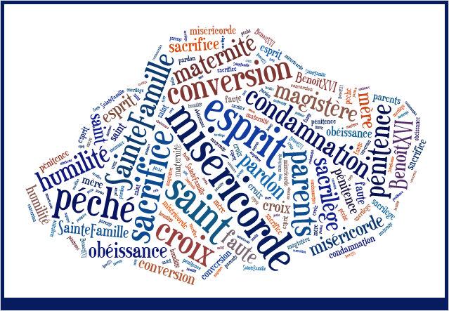Les grands absents: Père, Fils, Marie, Vierge, Sainte Vierge, Joseph, Sainte Famille, commandement, commandements, magistère, adultère, virginité, chasteté, péché, péché mortel, sacrilège, obéissance, excommunication, condamation, repentir, humilité, maternité, mère, père, direction spirituelle, assistance spirituelle, surnaturel (et j'ajouterai qu'à aucun moment il n'est question de Benoît XVI, ni de Jean Paul II, et de leur important - en volume et en qualité - enseignement sur la famille).