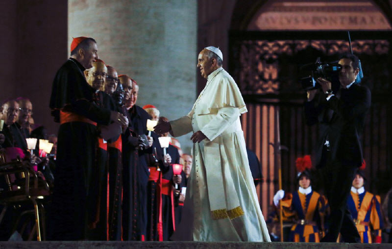 Nous savons, en effet, comment il y a dans l'Evangile une force et une tendresse capables de surmonter ce qui crée le malheur et la violence. Oui, dans l'Evangile il y a le salut qui comble les besoins les plus profonds de l'homme! De ce salut - oeuvre de la miséricorde de Dieu et de sa grâce - comme Église, nous sommes signe et instrument, sacrement vivant et efficace (cf. Evangelii gaudium, §112). S'il n'en était pas ainsi, notre édifice ne serait qu'un château de cartes et les pasteurs seraient réduits à des clercs fonctionnaires ("di stato"), sur les lèvres de qui le peuple chercherait en vain la fraîcheur et le «parfum de l'Evangile» (Ibid, §39).