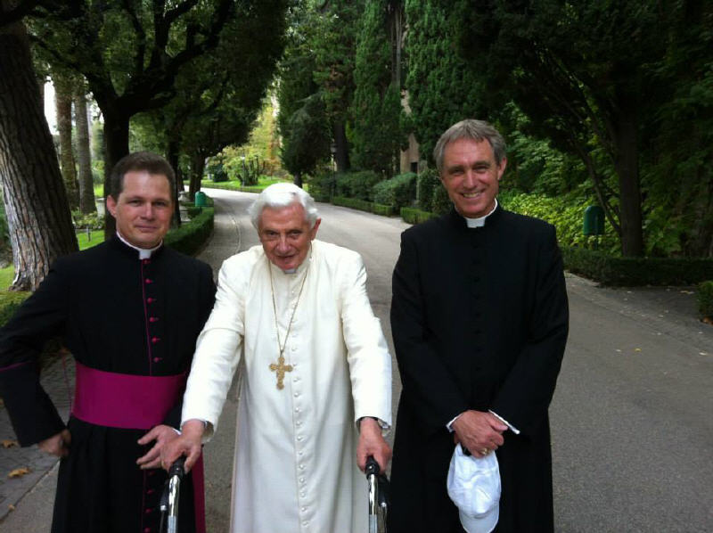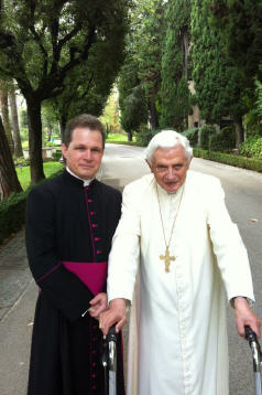 Jusqu'à présent, je me suis abstenue de publier les photos de Benoît XVI s'aidant d'un déambulateur pour marcher. Sans doute lui-même souhaitait-il garder cela dans sa sphère privée, puisqu'à chacune des ses apparitions publiques, il a pris soin de marcher simplement en s'aidant d'une canne.