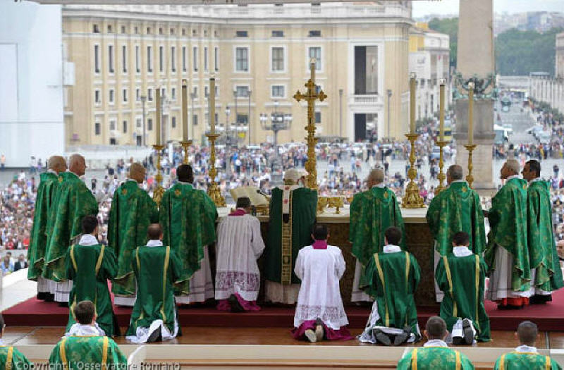 Avec cette concélébration solennelle, nous inaugurons la XIIIe Assemblée générale ordinaire du Synode des Évêques, qui a pour thème : La nouvelle évangélisation pour la transmission de la foi chrétienne. Ce thème répond à une orientation programmatique pour la vie de l’Église, de tous ses membres, des familles, des communautés, et de ses institutions. Et cette perspective est renforcée par la coïncidence avec le début de l’Année de la foi, qui aura lieu jeudi prochain, 11 octobre, à l’occasion du 50° anniversaire de l’ouverture du Concile Œcuménique Vatican II.