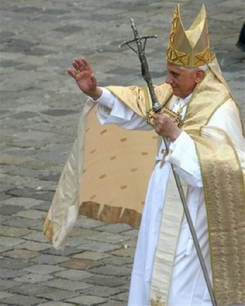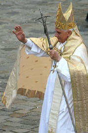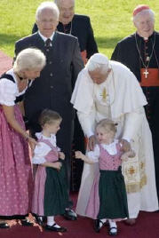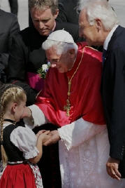 "Rends-nous forts dans la foi": tel a été le thème du rendez-vous de l'après-midi de dimanche, avec les enfants de la première communion et avec leurs jeunes familles, avec les catéchistes, les autres agents pastoraux et ceux qui coopèrent à l'évangélisation dans le diocèse de Munich. Ensemble, nous avons célébré les Vêpres dans la cathédrale historique, connue comme "cathédrale de Notre-Dame", où sont conservées les reliques de Saint Benno, patron de la ville, et où, en 1977, je fus ordonné Evêque. J'ai rappelé aux enfants et aux adultes que Dieu n'est pas loin de nous, dans un lieu de l'univers que l'on ne peut atteindre; au contraire, en Jésus, Il s'est approché de nous pour établir avec chacun une relation d'amitié. Chaque communauté chrétienne, et en particulier la paroisse, grâce à l'engagement constant de chacun de ses membres, est appelée à devenir une grande famille, capable d'avancer unie sur le sentier de la vie véritable.