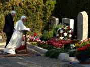 Le lendemain, mardi, à Ratisbonne, diocèse érigé par saint Boniface en 739 et dont le Patron est l'Evêque saint Wolfgang, se sont déroulés trois rendez-vous importants. Le matin, la Messe sur l'Islinger Feld, au cours de laquelle, reprenant le thème de la visite pastorale "Celui qui croit n'est jamais seul", nous avons réfléchi sur le contenu du Symbole de la foi. Dieu, qui est Père, veut recueillir, à travers Jésus Christ, toute l'humanité dans une unique famille, l'Eglise. C'est pourquoi celui qui croit n'est jamais seul; celui qui croit ne doit pas avoir peur de finir dans une voie sans issue. Dans l'après-midi, je me suis ensuite rendu dans la Cathédrale de Ratisbonne, également célèbre pour son choeur de voix blanches, les "Domspatzen" (passereaux de la cathédrale), qui s'enorgueillit de mille années d'existence et qui, pendant trente ans, a été dirigé par mon frère Georg. C'est là que s'est tenue la célébration oecuménique des Vêpres, à laquelle ont pris part de nombreux représentants des diverses Eglises et communautés ecclésiales en Bavière et les membres de la Commission oecuménique de la Conférence épiscopale allemande. Cela a été une occasion providentielle pour prier ensemble, afin qu'arrive au plus tôt la pleine unité entre tous les disciples du Christ et pour réaffirmer le devoir de proclamer notre foi en Jésus sans affaiblissement, mais de manière intégrale et claire, et surtout pour notre comportement d'amour sincère.