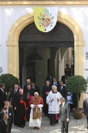 La journée du lundi 11 septembre a été en grande partie consacrée à la halte à Altötting, dans le diocèse de Passau. Cette petite ville est connue comme "Herz Bayerns" (le coeur de la Bavière), et c'est là qu'est conservée la "Vierge Noire", vénérée dans la Gnadenkapelle (Chapelle des Grâces), but de nombreux pèlerins provenant d'Allemagne et des pays d'Europe centrale. Dans les environs se trouve le couvent capucin de Sainte-Anne, où vécut saint Konrad Birndorfer, canonisé par mon vénéré prédécesseur, le Pape Pie XI, en 1934. Avec les nombreux fidèles présents à la Messe, célébrée sur la place devant le sanctuaire, nous avons réfléchi ensemble sur le rôle de Marie dans l'oeuvre du salut, pour apprendre d'Elle la bonté serviable, l'humilité et la généreuse acceptation de la volonté divine. Marie nous conduit à Jésus: cette vérité a été rendue encore plus visible, au terme du divin Sacrifice, par la pieuse procession lors de laquelle, portant avec nous la statue de la Vierge, nous nous sommes rendus dans la nouvelle chapelle de l'Adoration eucharistique (Anbetungskapelle), inaugurée pour l'occasion. La journée s'est terminée par les Vêpres mariales solennelles dans la basilique Sainte-Anne d'Altötting, en présence des religieux et des séminaristes de Bavière, ainsi qu'avec les membres de l'Oeuvre pour les Vocations.