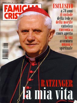 En 1997, à l'occasion de la parution de sa biographie "Ma vie", le cardinal Ratzinger accordait une interviewe à la revue catholique de tendance libérale /"Famiglia Cristiana" (2/7/2014)