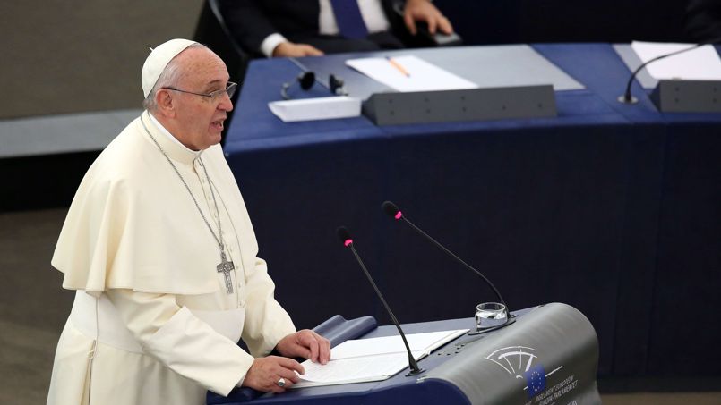 S’il continue à ce rythme, on va l’appeler le pape François Express : ce fut la plus courte visite d’un pape en terre française, hier à Strasbourg, devant les institutions européennes, le Parlement européen et son illustre inconnu sur les bords de l’Ill, le Conseil de l’Europe. 3 h 50 chrono annoncées, deux discours convenus, une centaine de mains serrées, une visite très institutionnelle en somme, en regard de celle plus prophétique de Jean-Paul II en 1988, restée dans toutes les mémoires. Un an jour pour jour avant la chute du mur de Berlin, Jean-Paul II au même endroit avait convié tous les citoyens européens à « se donner et à ne reconnaître pour loi que ce qui est objectivement juste et bon ».