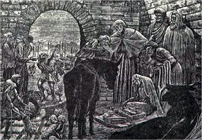 Saint-Joseph accueille les bergers qui viennent à la crèche, tandis que la Sainte Vierge réserve toute son attention à l'Enfant Jésus. François appelle Noël «la fête de la pauvreté», et quiconque regarde cette image peut voir pourquoi. Les bergers, ainsi Saint-Joseph et Notre-Dame, sont représentés sans aucune richesse.
