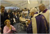 Mais ici, regardant le "direct" sur KTO, j'avais été extrêmement émue par l'attitude de certains malades, pour qui le fait de recevoir l'hostie des mains du Saint-Père représentait manifestement quelque chose de bouleversant, et d'extraordinaire. On voit très bien le geste d'un homme qui lui envoie un baiser avec le doigt. Et il n'était pas le seul...