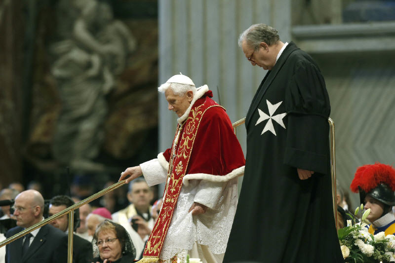 Le 9 février 2013, le Saint-Père recevait l'Ordre de Malte dans la basilique Saint-Pierre. C'était sa dernière apparition publique avant le coup de tonnerre du 11 février (12/11/2014)