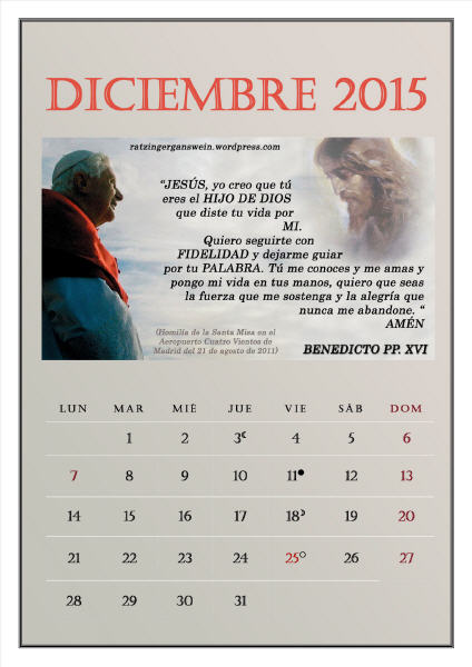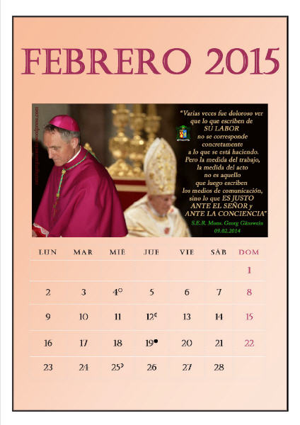 Pour le téléchargement des images en grand format (et surtout pas les aperçus ci-dessous!), c'est ici: ratzingerganswein.wordpress.com/2014/12/01/calendario-2015-ratzingerganswein/