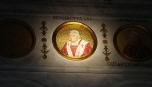 Il est représenté sur le portail en bronze de l'église paroissiale de Castelgandolfo(28/11/2014)