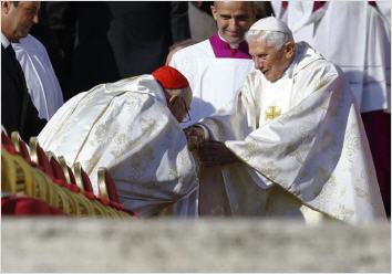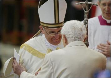 - Cette calotte blanche à la main... : Le geste de Benoît XVI, à la Basilique Saint-Pierre, devant François
