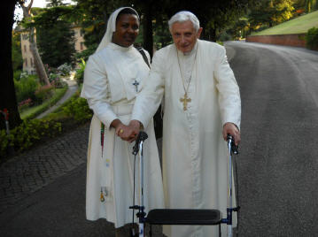 Pendant ce temps, Ratzinger arrive à petits pas dans la petite sacristie, nous échangeons un bref salut, tandis qu'il endosse les vêtements pour la célébration qui commence immédiatement après: le Pape préside, moi (oui, vraiment moi) et le Secrétaire nous concélébrons, et les trois soeurs participent avec nous.